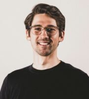 A web browser window displaying a website homepage with text promoting easy marketplace creation using Airtable without coding. The design includes a dark background, bright accent colors, and a gradient border. There is a navigation menu with options like Product, Use Cases, Explore, and others. A call-to-action button labeled 'Start for free' is featured prominently.